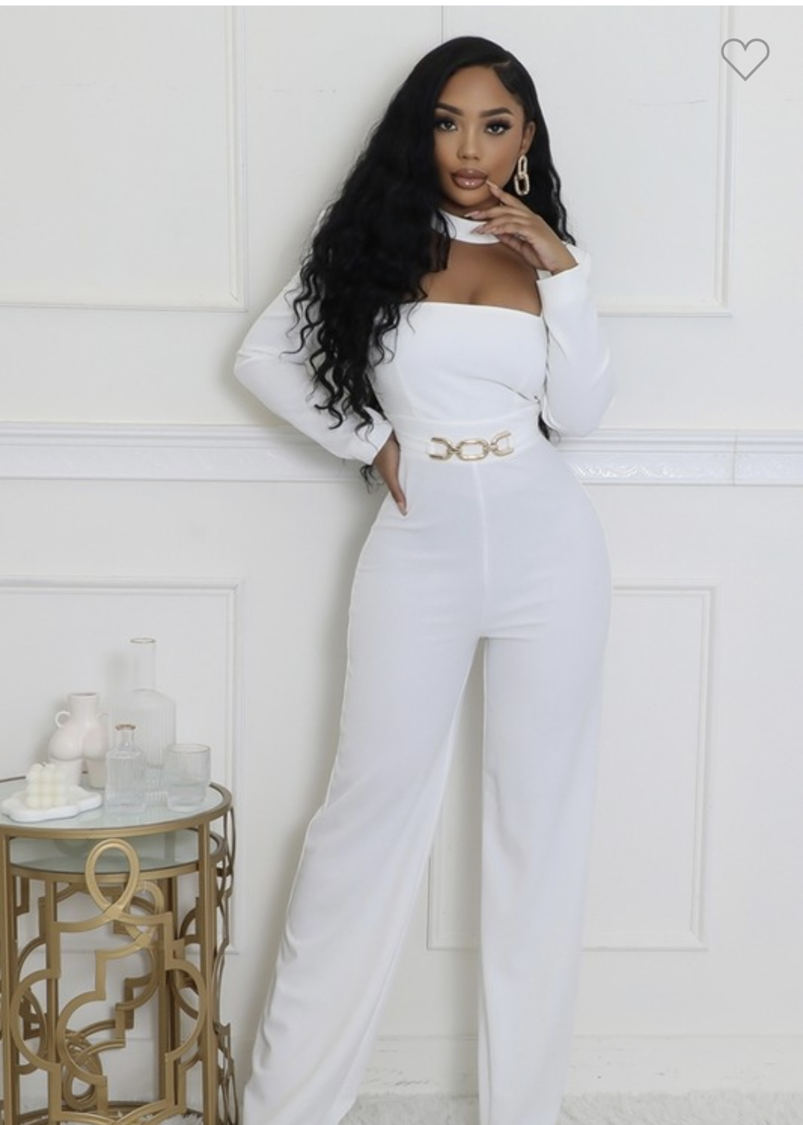 Stretch jumpsuit, round neckline, long sleeve, cutout, zipper closure. 95% Polyester, 5% Spandex