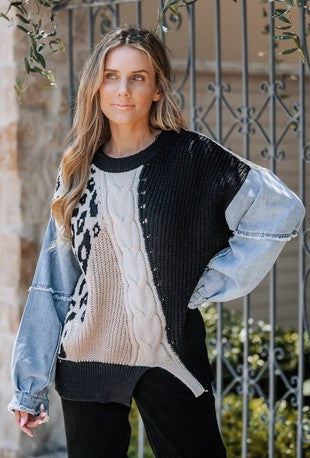 Oversize Blue jeans, leopard sweater. 100% polyester. Runs big so size down if you don't want the oversize look.