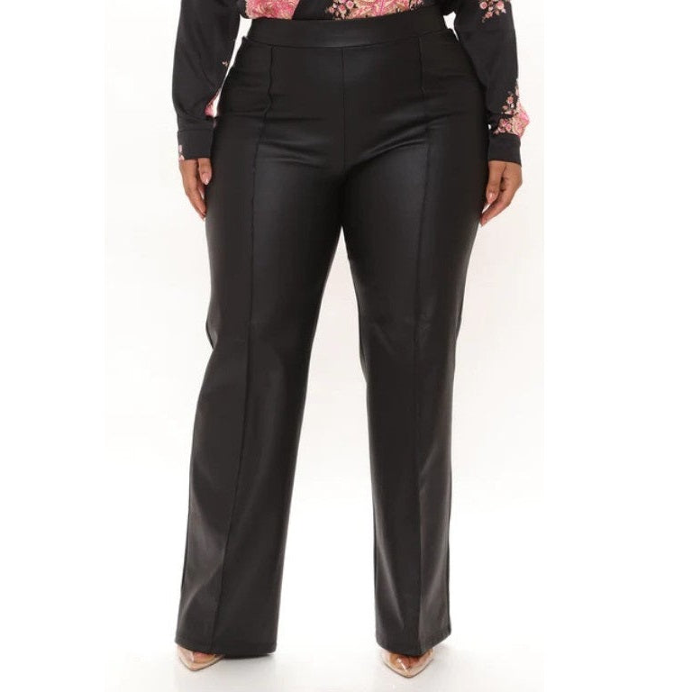HIGH WAISTED - HIGH RISE - PINTUK ON FRONT - FAUX LEATHER - HIDDEN BACK ZIPPER - 35" IINSEAM - 93% POLYESTER 7% SPANDEX