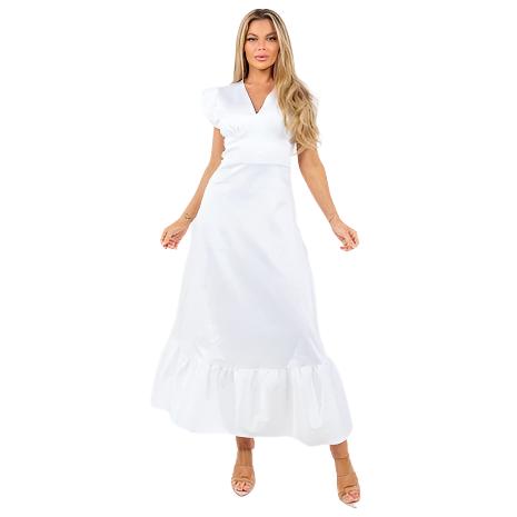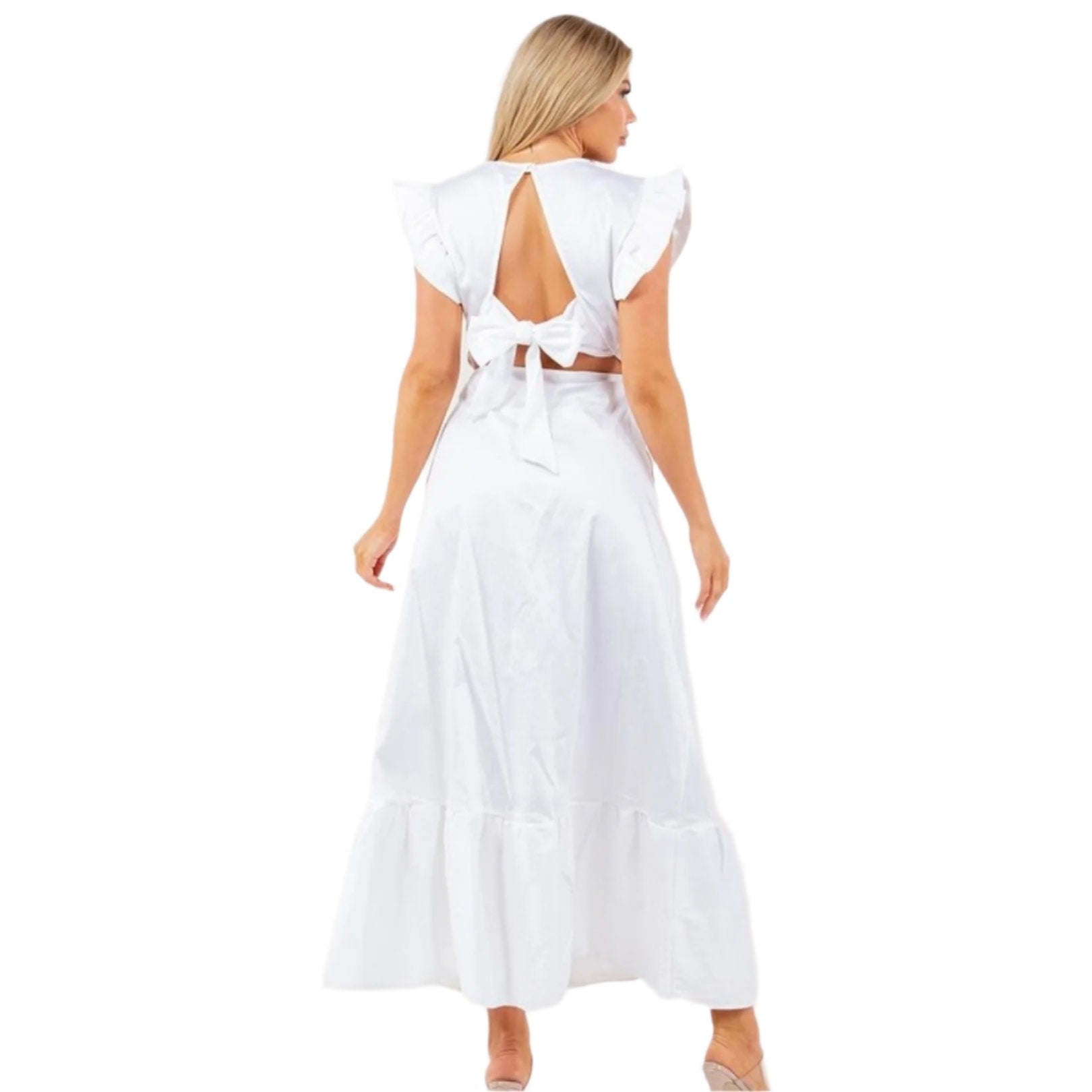 V-neck long dress with tie back, 97% cotton 3% spandex